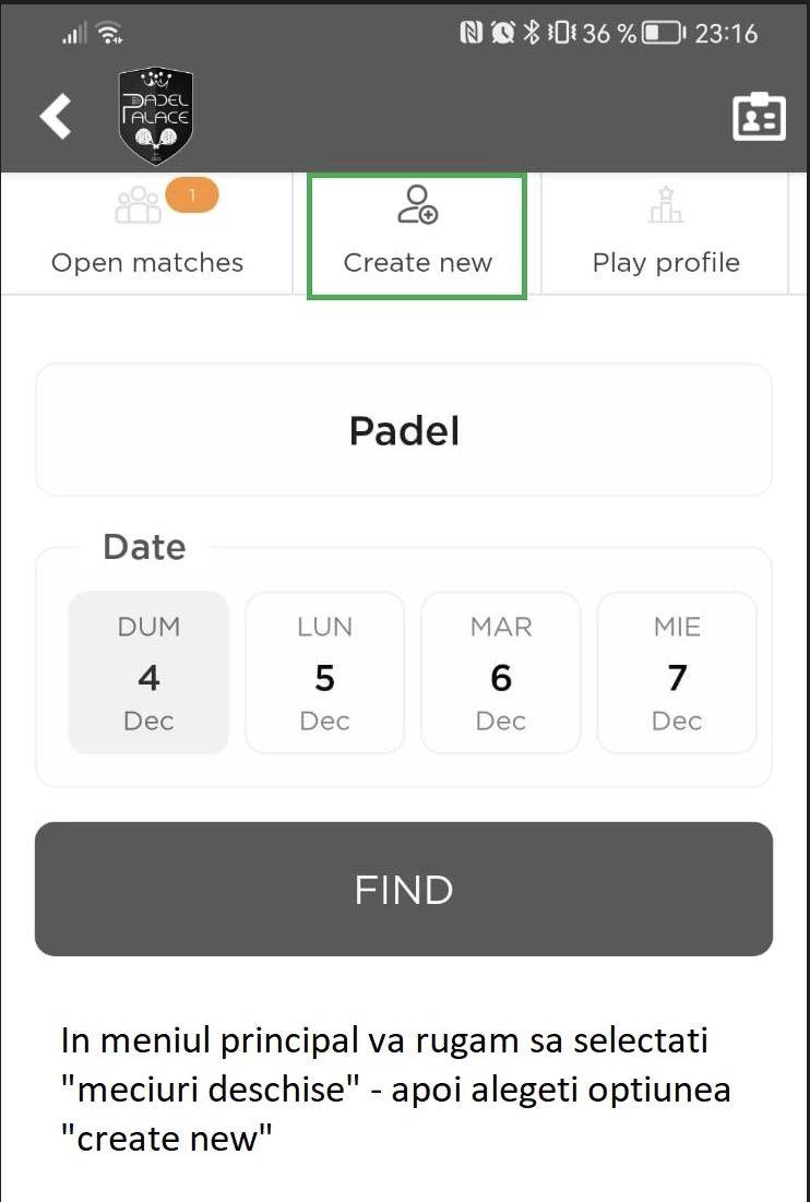 Meciurile pot fi deschise atat din aplicatia Padel Palace (Meniu - sectiunea Meciuri) cat si de pe site: www.padelpalace.ro (Meniu - Rezervari - Meciuri). Pentru a confirma participarea la meci trebuie sa achitati online, in caz contrar sistemul va sterge cererea de participare si veti fi eliminat din meci.